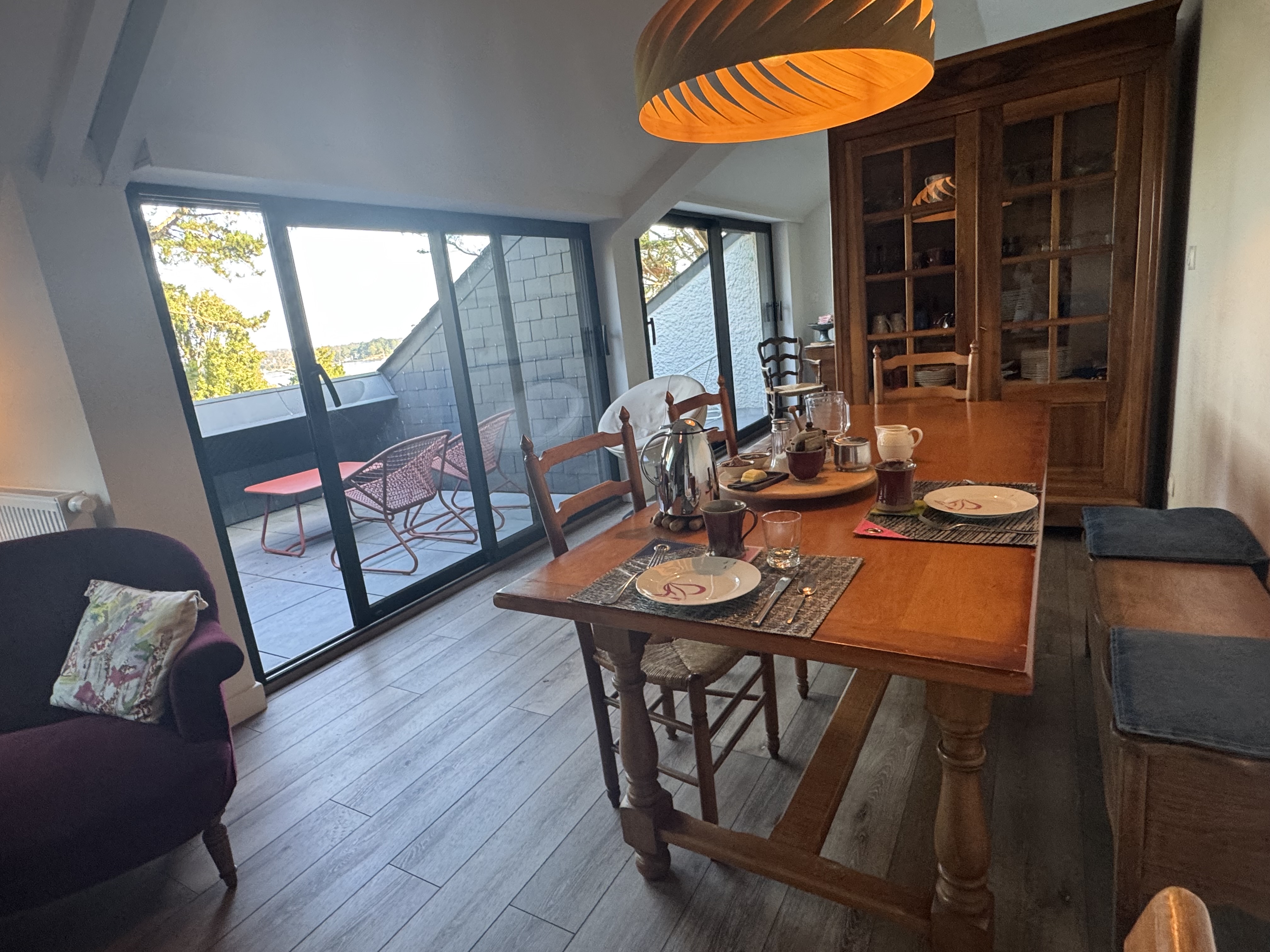 Le petit déjeuner sera servi à l’étage ou sur la terrasse quand le temps le permet.