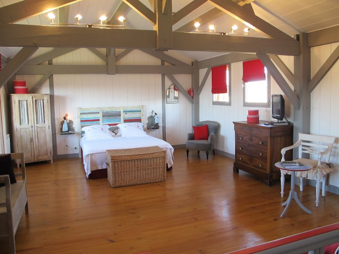 Superficie: 60m² sur 2 niveaux. 1 chambre à l'étage (40m²) avec accés indépendant: Salle d'eau et 2 toilettes. Coin salon. TV écran plat. Cuisine équipée.